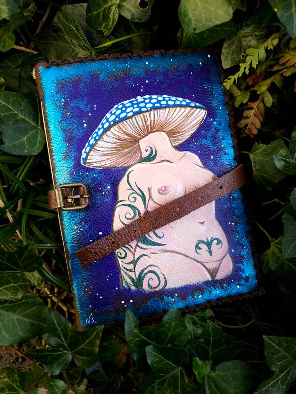 Leather Handpainted book "mushroom lady"