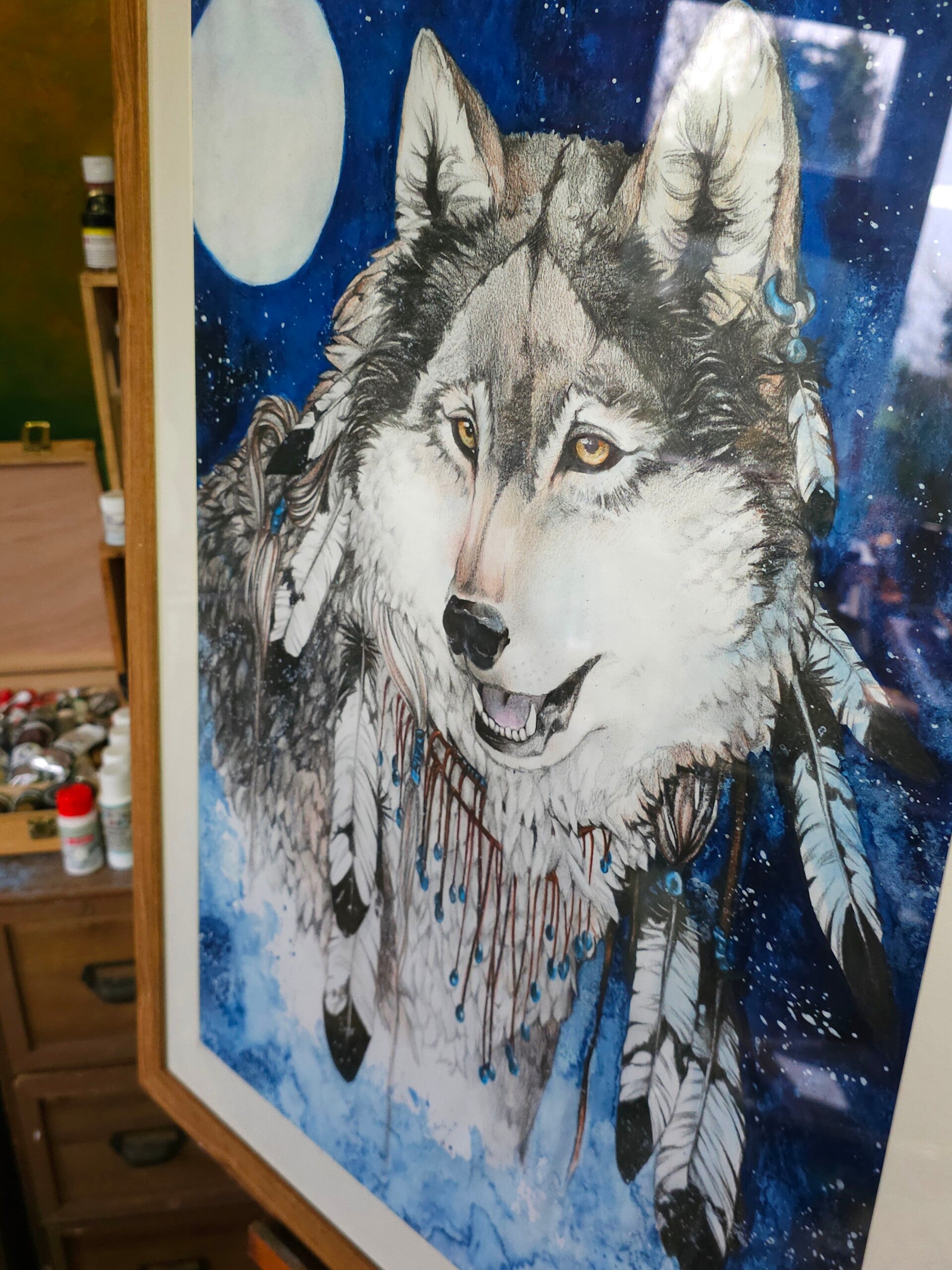 Original acrylic painting "Shaman wolf"